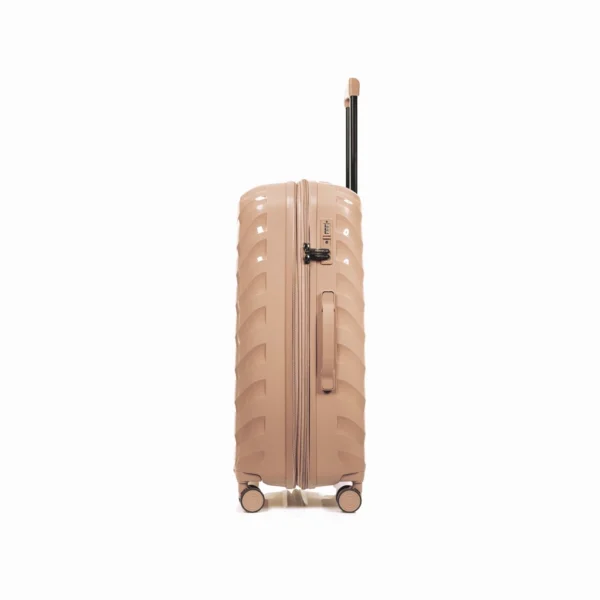 جنس بدنه PP 100% خالص کرهای: مقاوم در برابر ضربه، فشار، خط و خش. این چمدان بهراحتی از وسایل شما در سفرهای طولانی یا پروازی محافظت میکند.