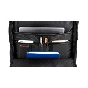 این کوله پشتی دارای دو محفظه بزرگ و چندین جیب متنوع است که کمک میکند وسایل خود را به صورت منظم و مرتب در آن قرار دهید. محفظه اختصاصی لپتاپ تا سایز 15.6 اینچ و جیب ویژه برای آیپد تا 9.7 اینچ، امکان حمل آسان و ایمن دستگاههای دیجیتال شما را فراهم میکند. علاوه بر این، جیبهای مخصوص گوشی، پاوربانک، خودکار و کلید نیز در نظر گرفته شدهاند تا دسترسی سریع و راحتتری به وسایلتان داشته باشید.