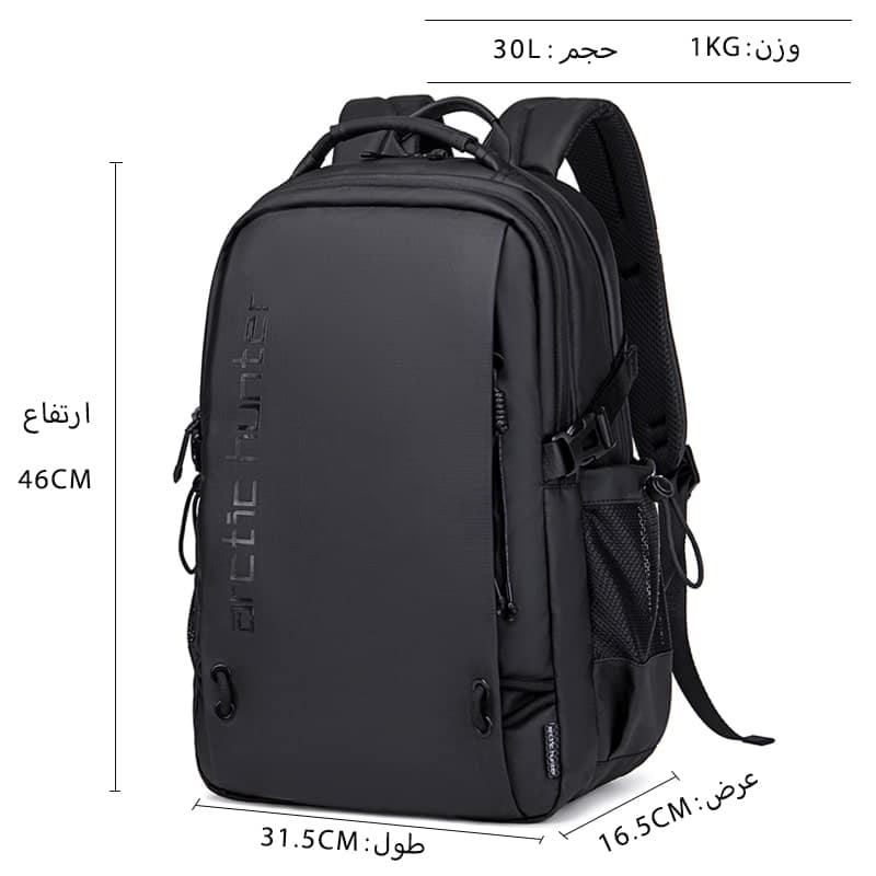 حجم داخلی: حدود ۳۰ لیتر – مناسب برای لپتاپ، تبلت، لباس، دفتر، کتاب و لوازم جانبی