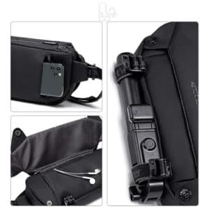- بند های قابل تنظیم در پایین کیف برای نگهداری سه پایه، استابلایزر و میله های سلفی می باشد.