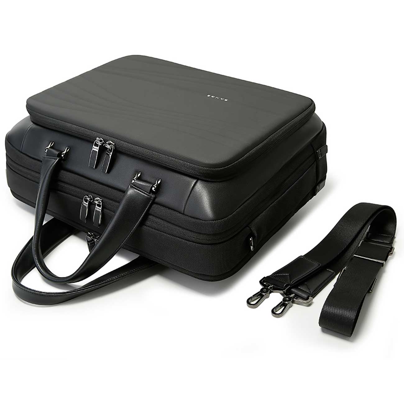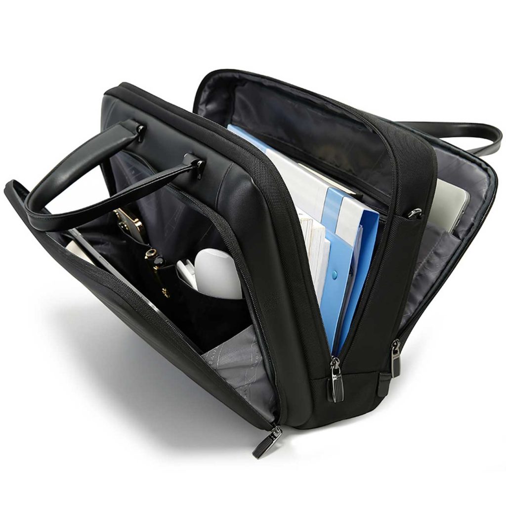 طراحی ارگونومیک این محصول شامل بند دوشی نرم و دستگیره دستی مقاوم هست که حمل اون حتی برای ساعتهای طولانی خستهکننده نباشه. ظاهر ساده و رسمی این کیف باعث میشه به راحتی با استایلهای اداری و سازمانی هماهنگ بشه و انتخاب مناسبی برای محیطهای کاری باشه. نظمدهی داخلی مناسب نیز فضای کافی برای قرار دادن شارژر، موس و دفترچهها رو فراهم میکنه تا همیشه وسایلتون دسترس باشن.